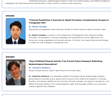 2025年10月25日(金)〜27日(月)に韓国・済州島で開催される「2025 World Congress on Kinesiology & Sport Science (WCKSS)」において、招待講演を行う予定です。本講演は、WCKSSと体力医学会が共催するシンポジウム「Evidence Identified by Health Science Studies, Are They Practical in Real Life? - Responsibilities of Health Science Research(健康科学研究で得られた知見は現実に役立つのか?-健康科学研究の責任-)」の一環として行われます。以下の演題で発表を予定しています。